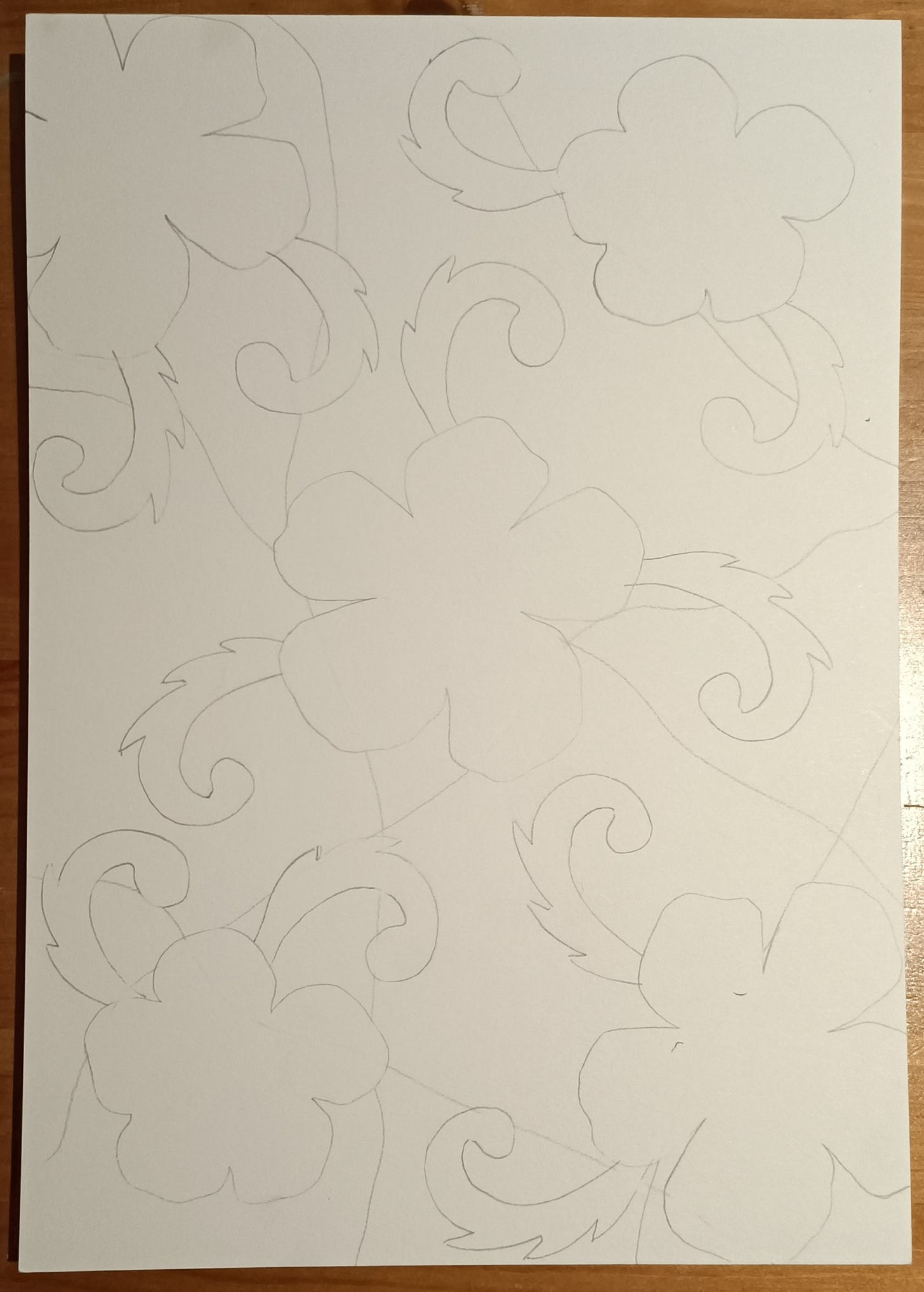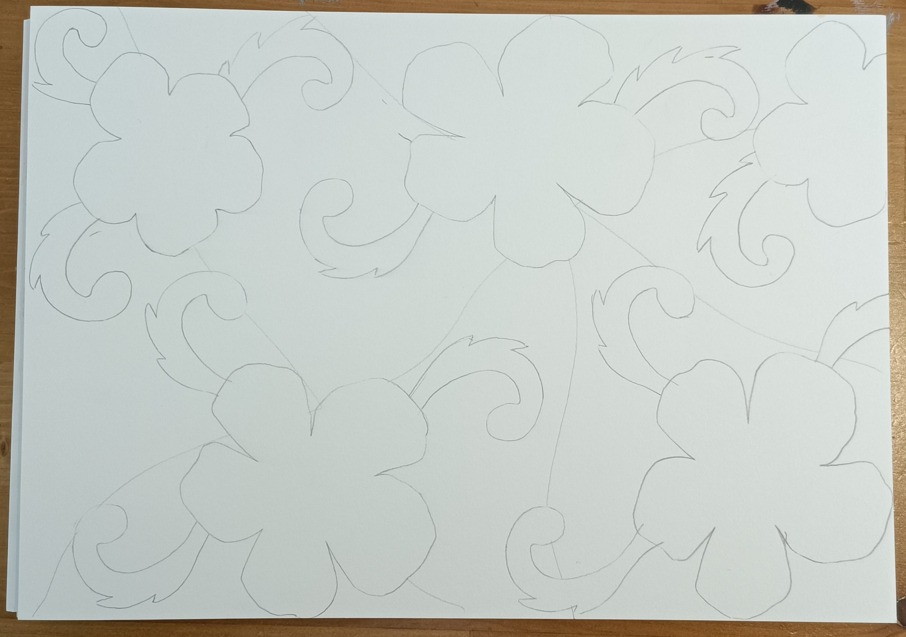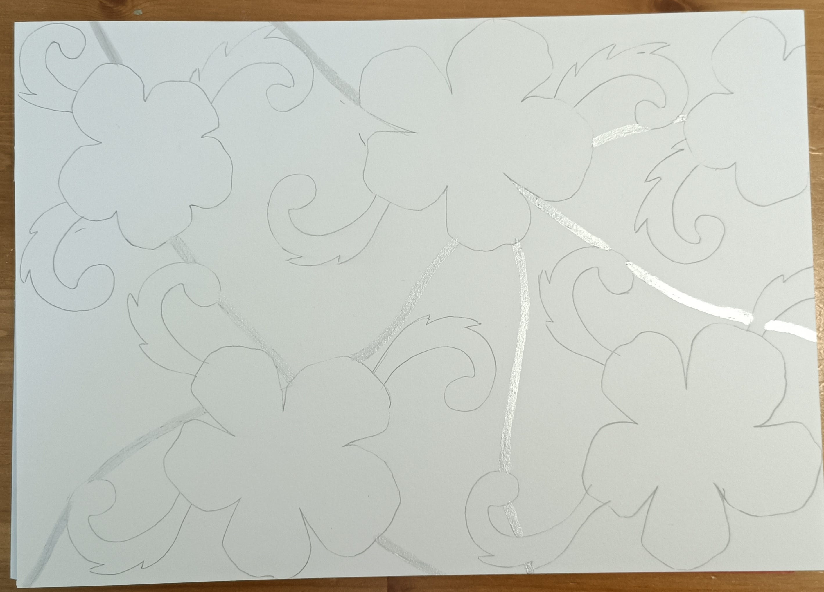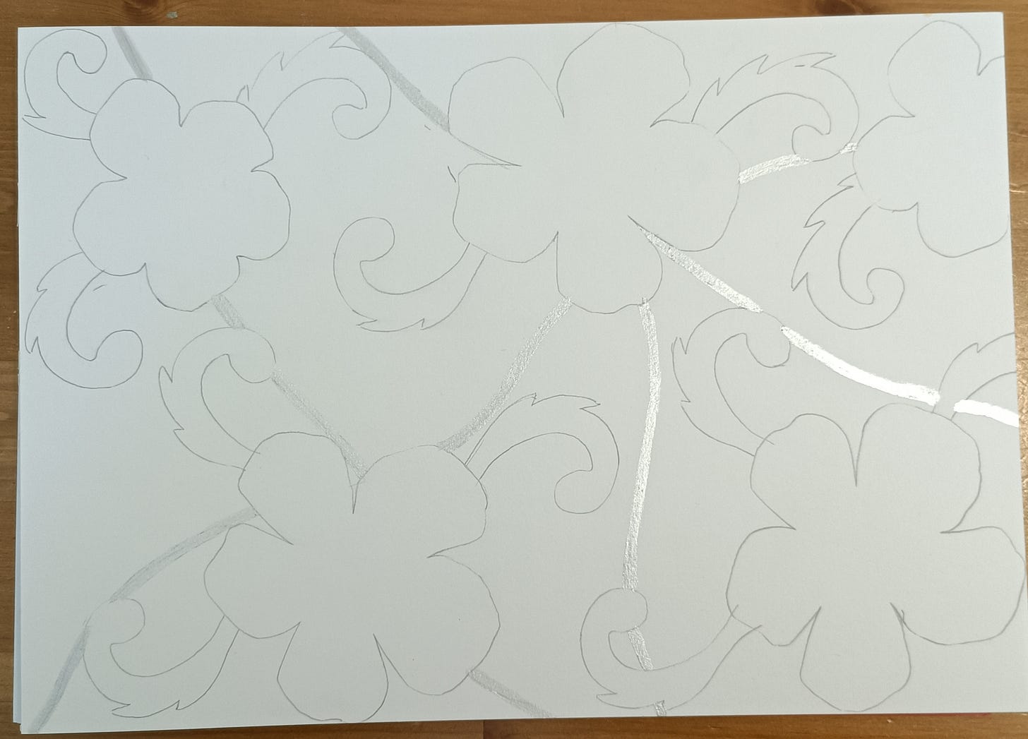 11) I transferred flowers and scrolls on the art paper, A 4 size.