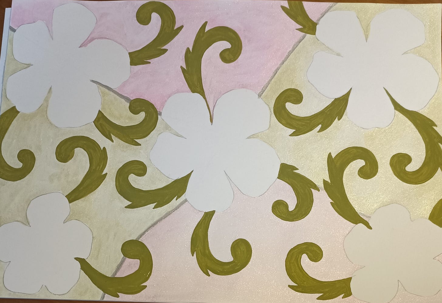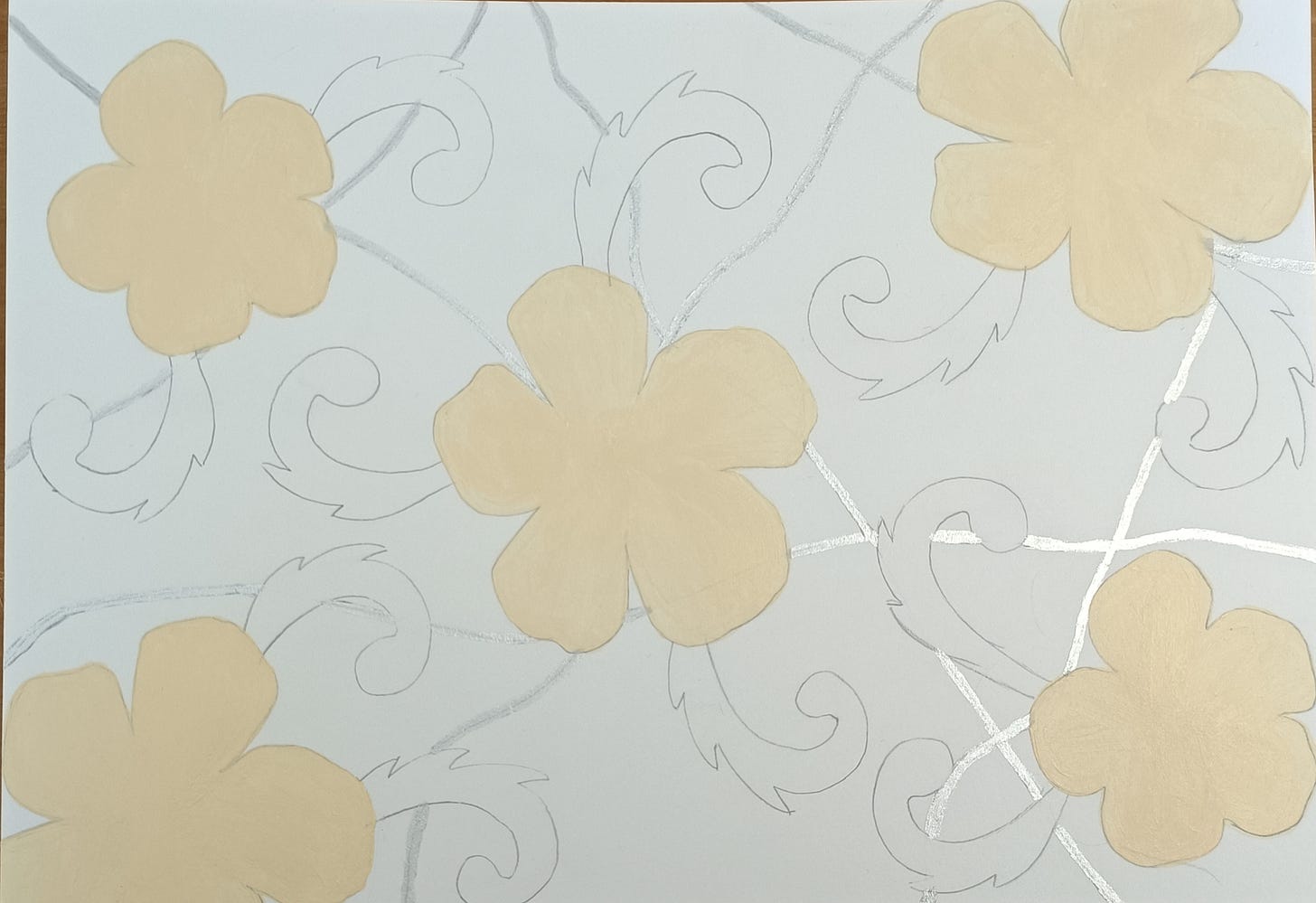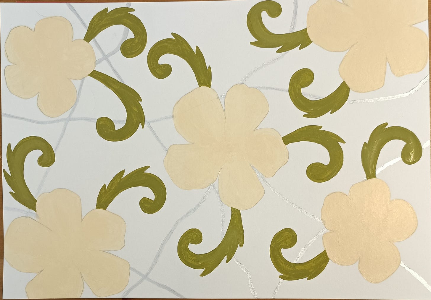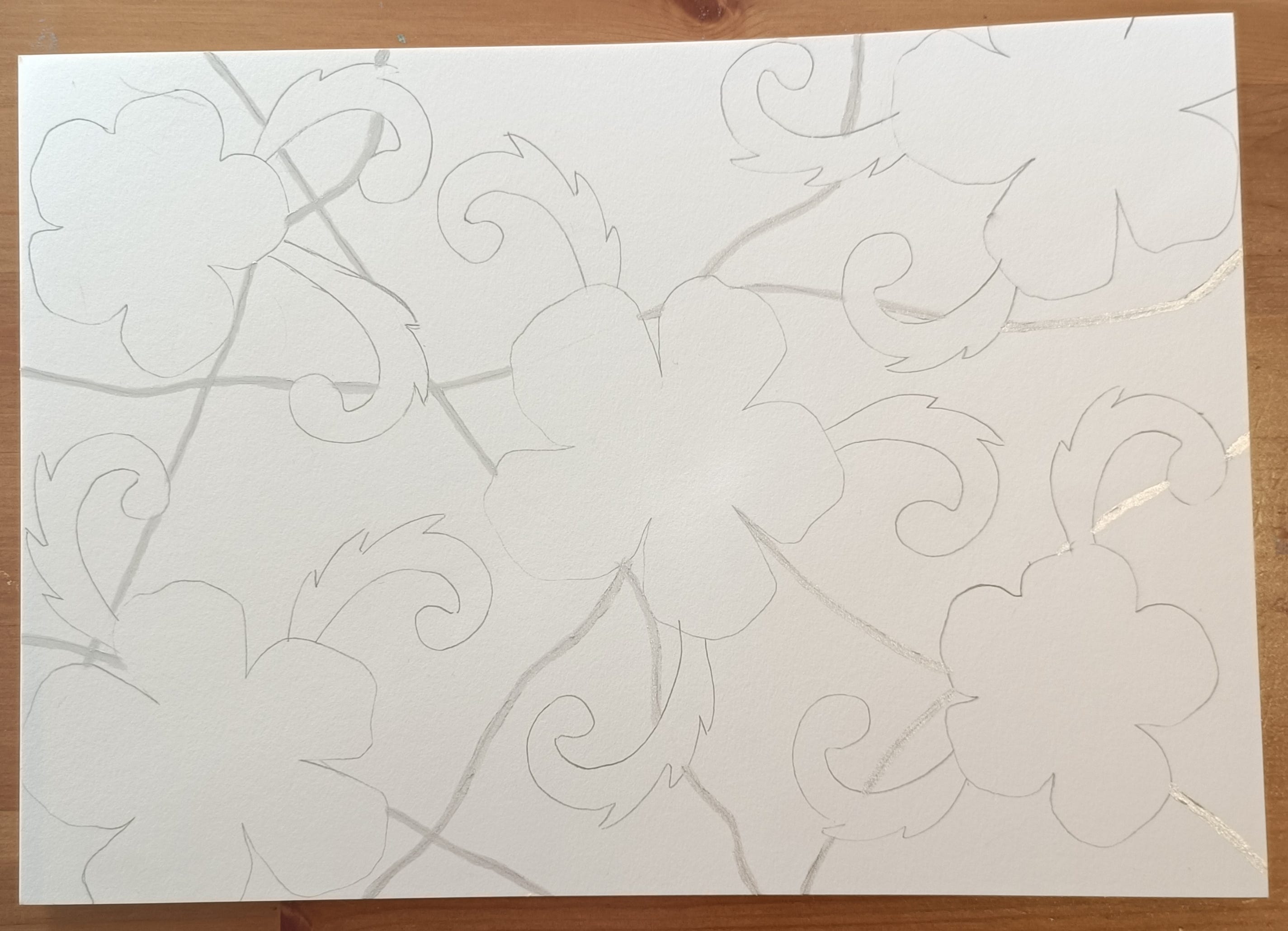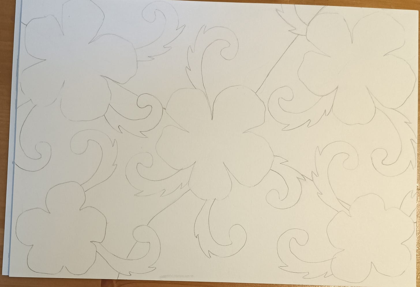 11) I transferred flowers and scrolls on the art paper, A 4 size.