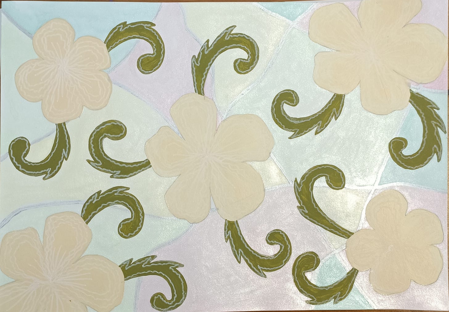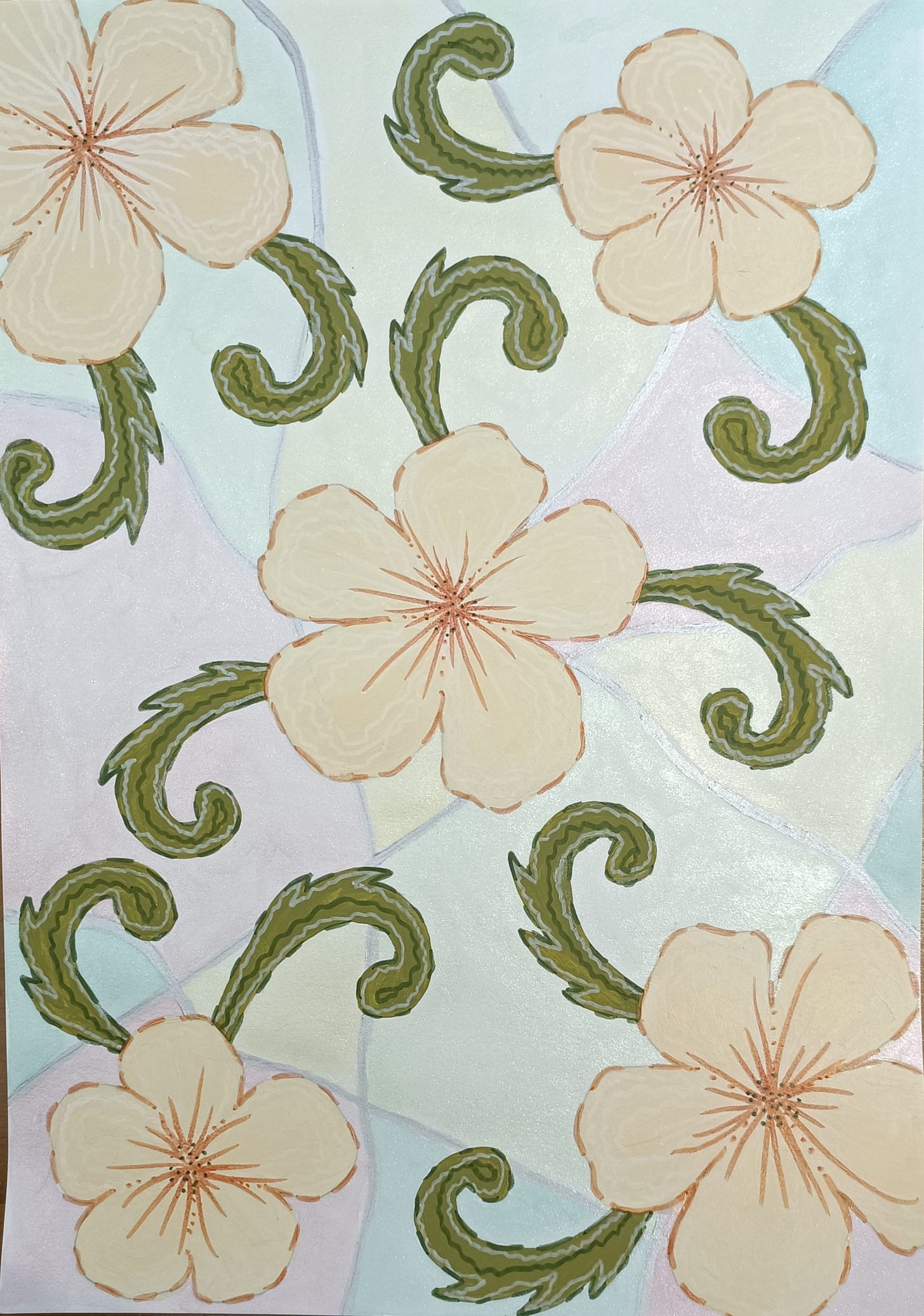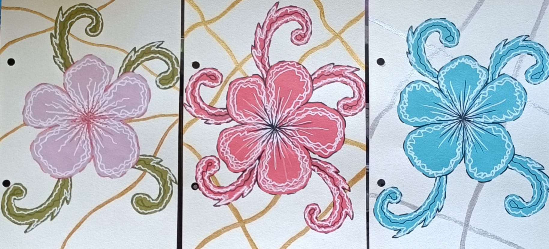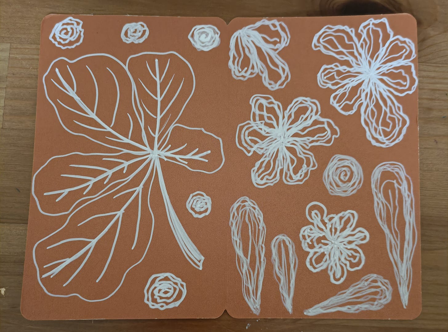11) I transferred flowers and scrolls on the art paper, A 4 size.