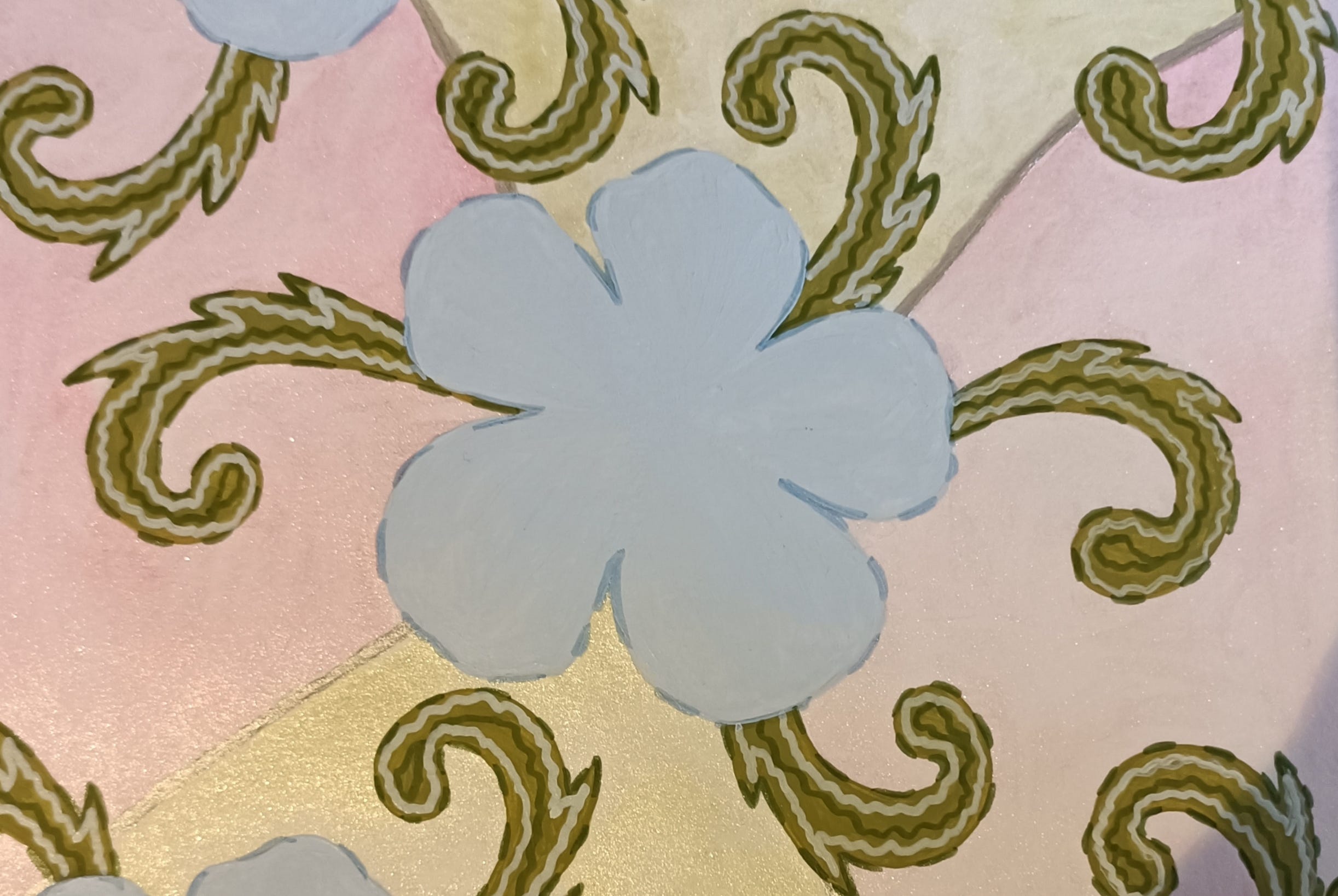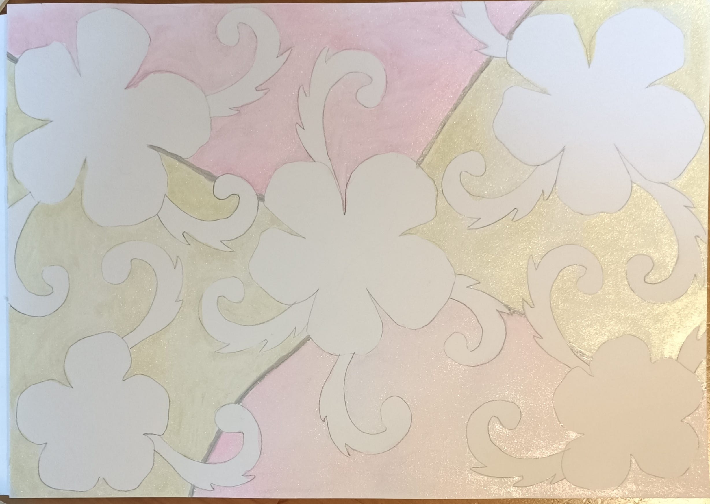 30) I draw the background using metallic watercolours (light pink and light yellow).