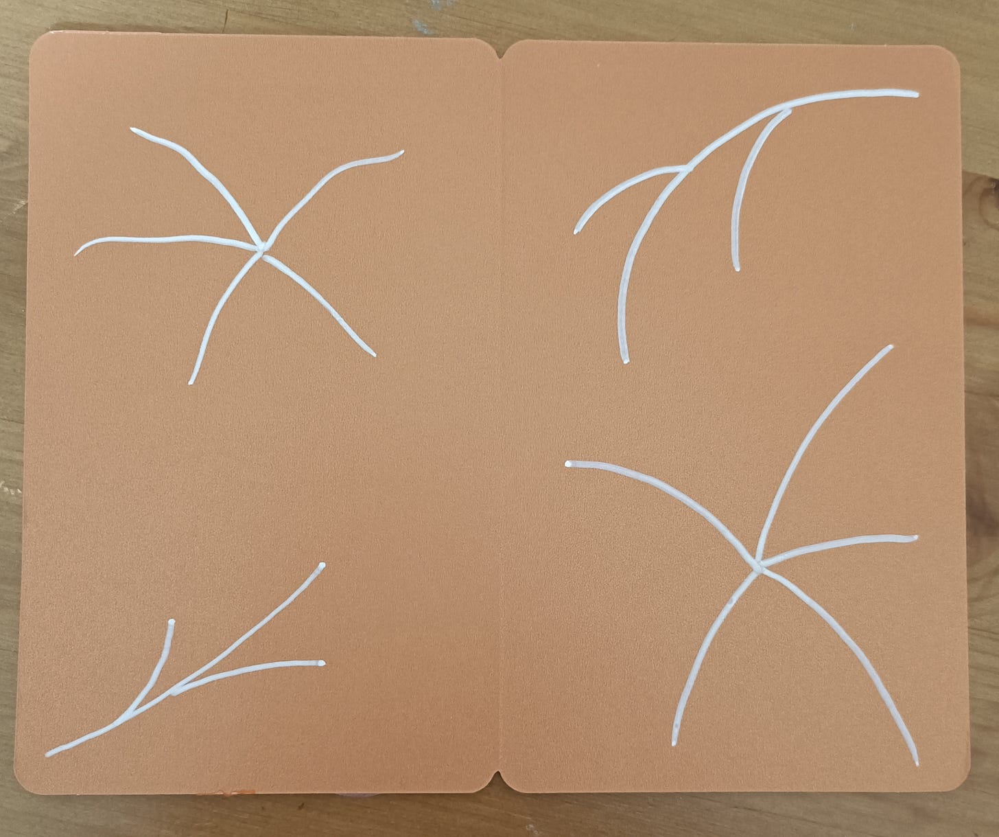 2) Draw 5 lines, you don’t have to be precise and measure every line, just draw freestyle lines.